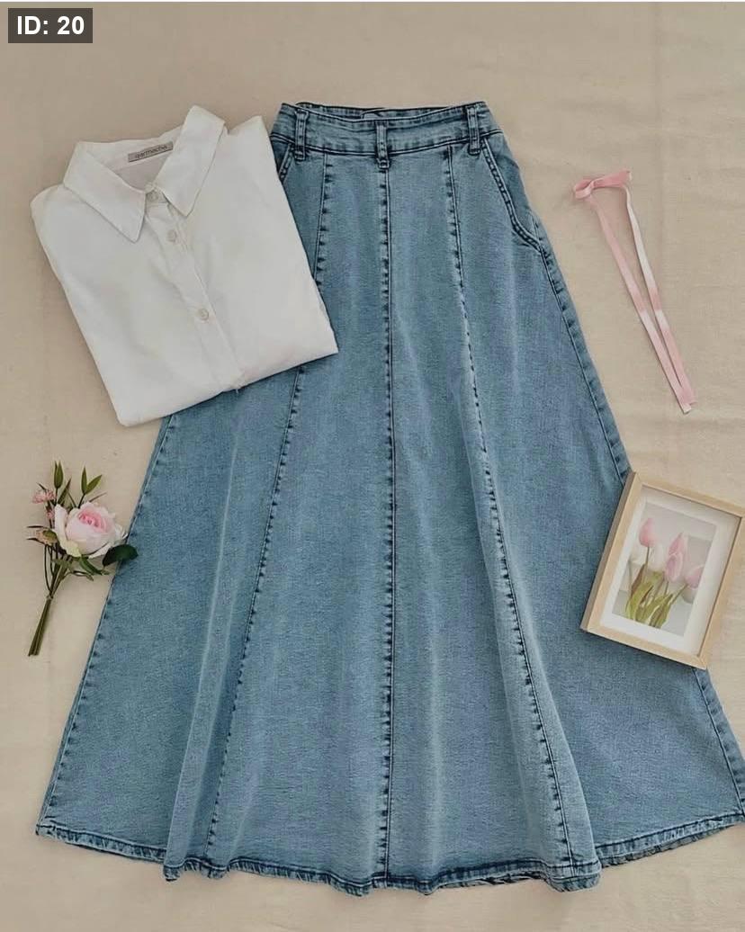 تنورة جينز دبل كلوش