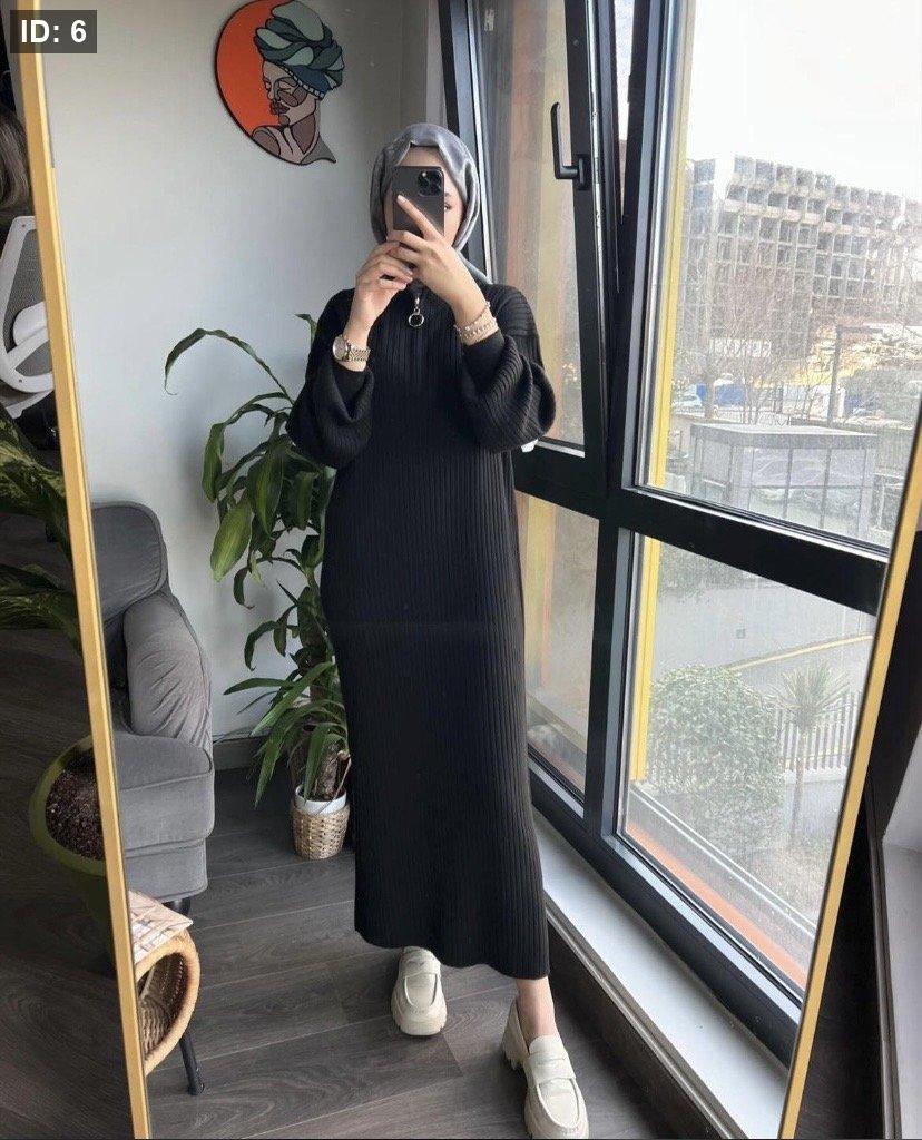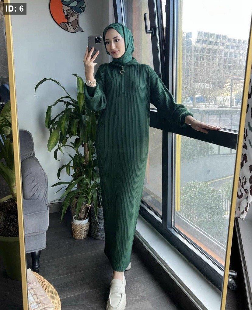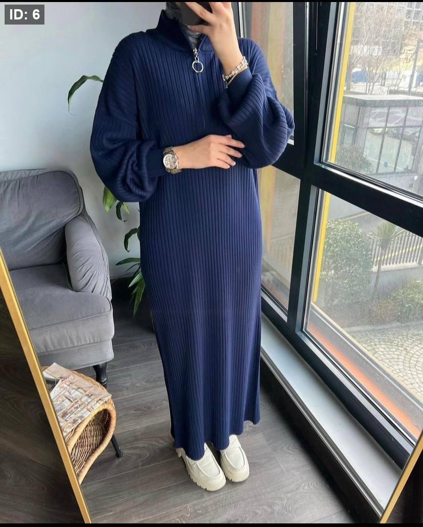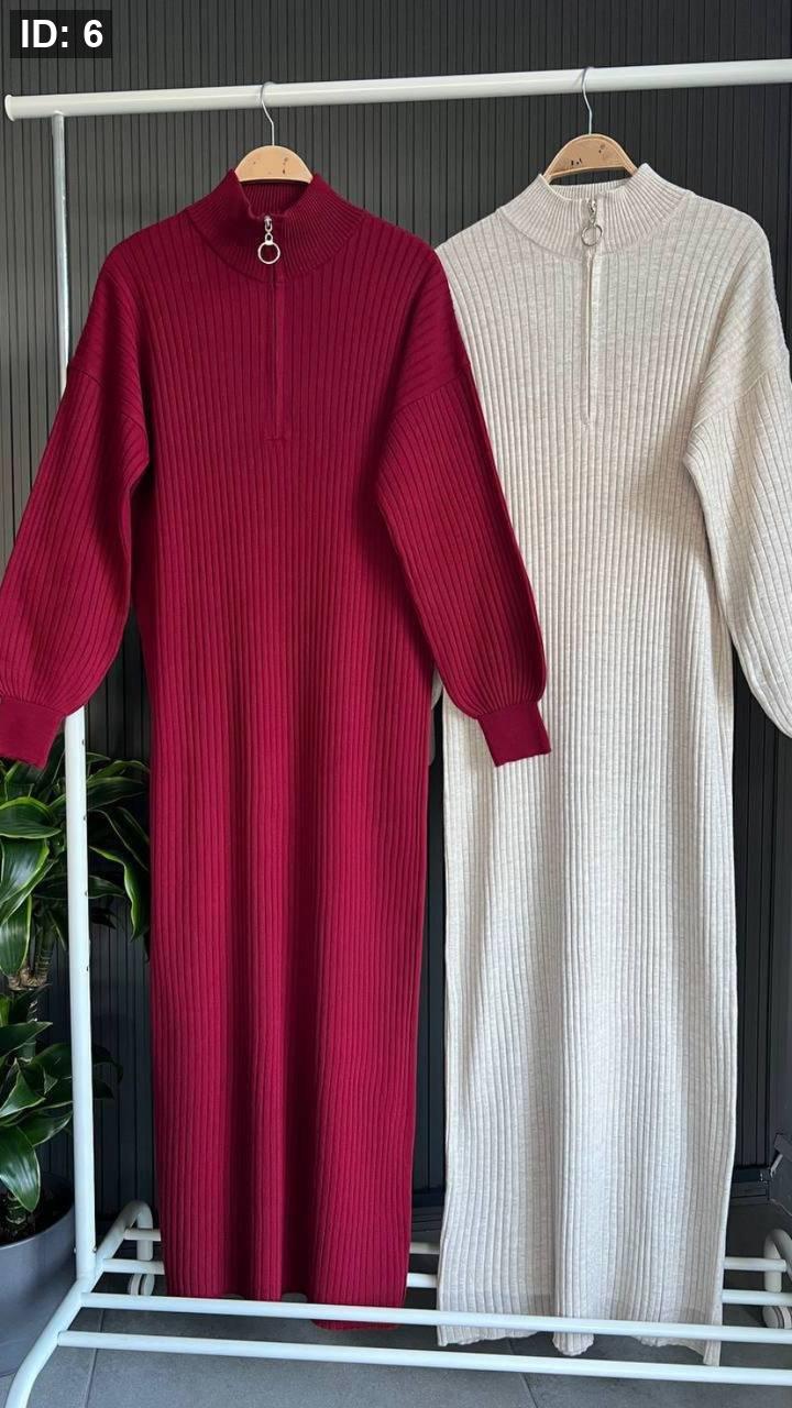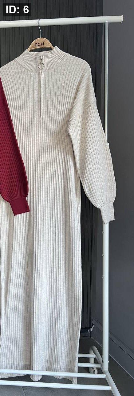 فستان صوف محزز بسحاب